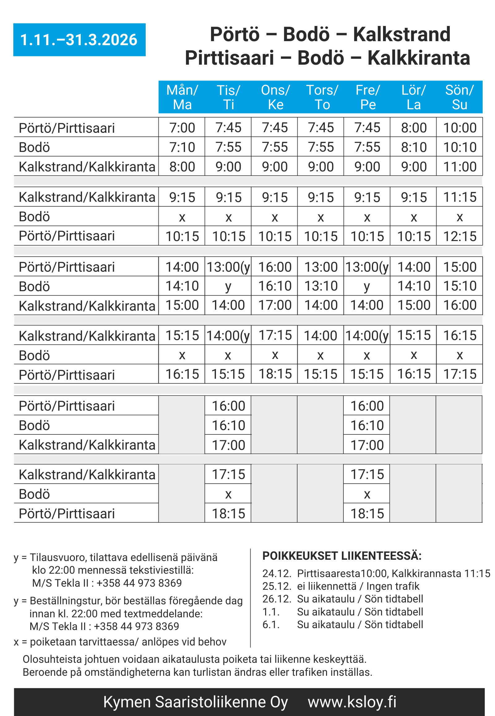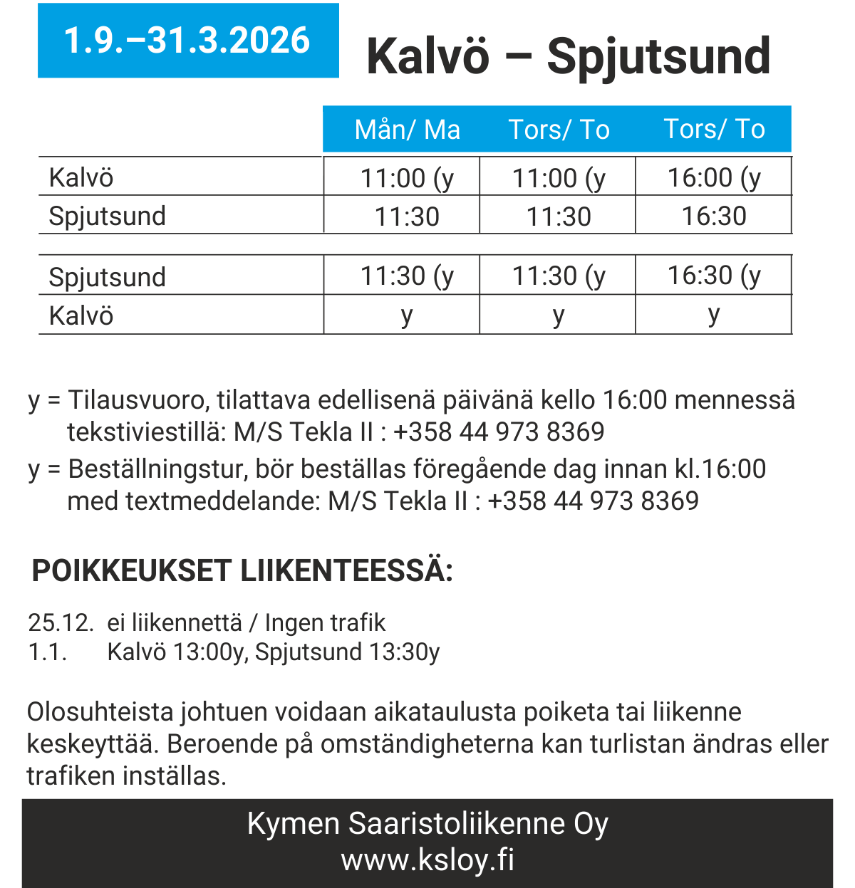 Aikataulut voimassa 1.9.–31.12.2025