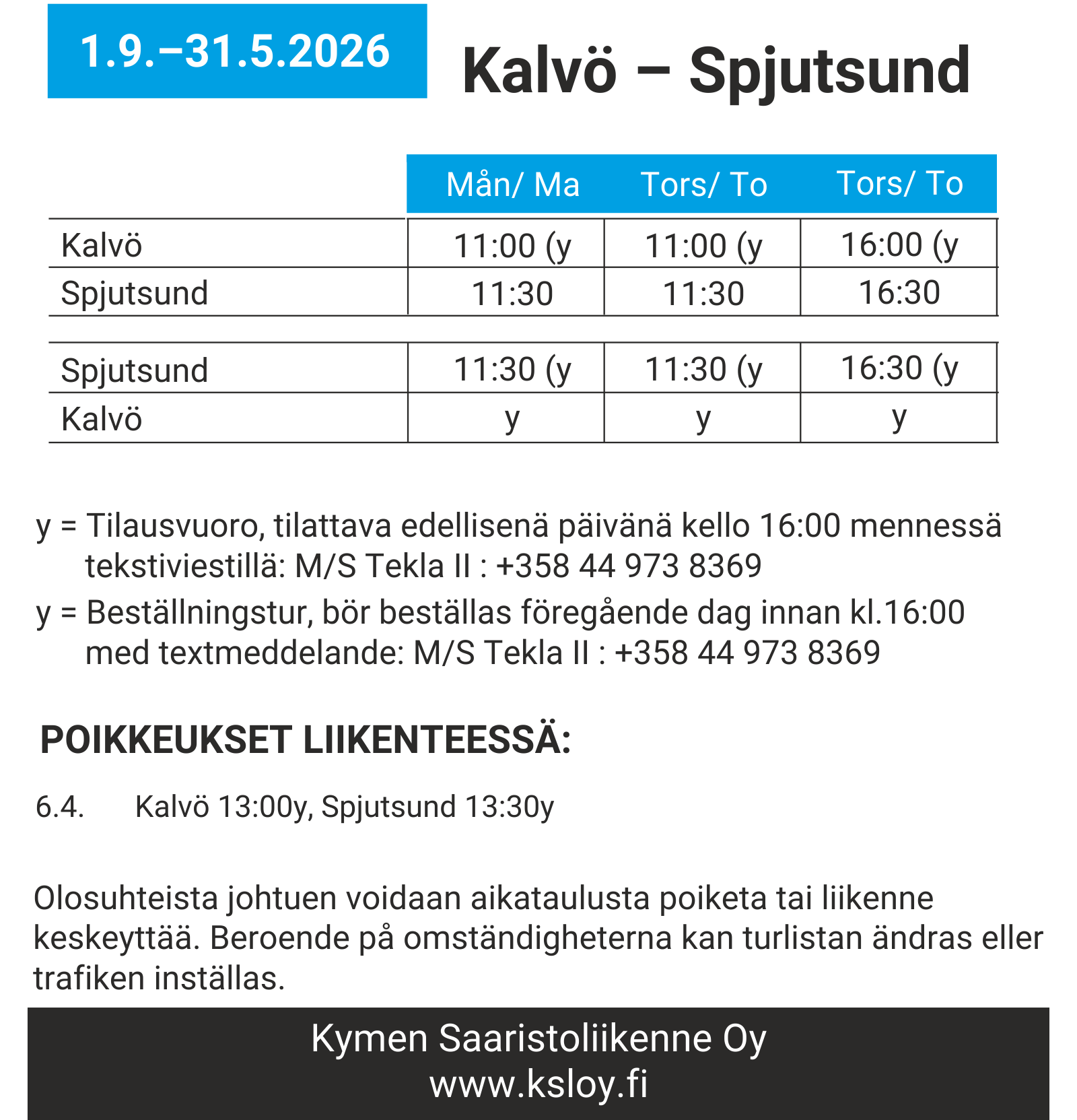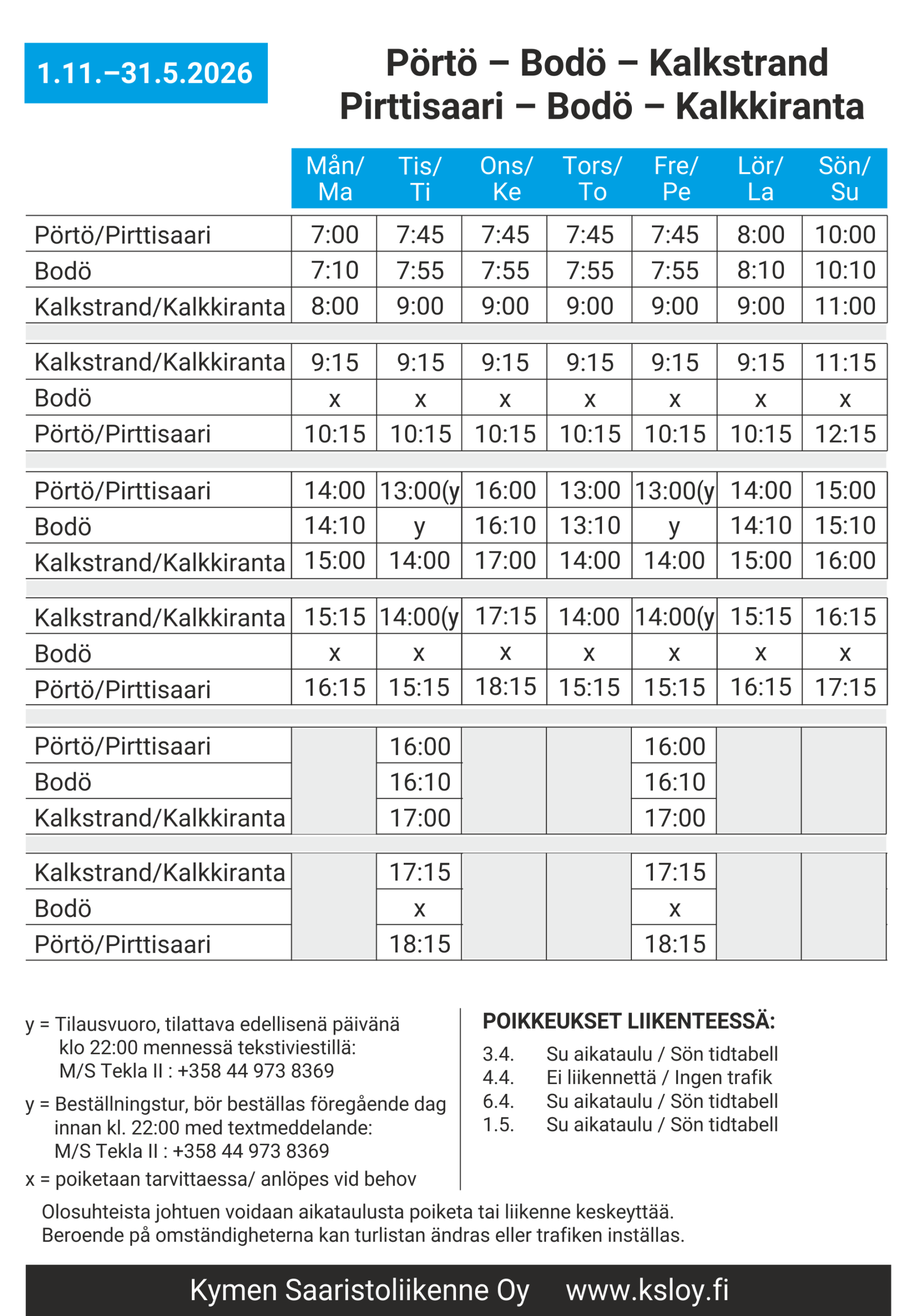 Aikataulut voimassa 1.9.–31.5.2026